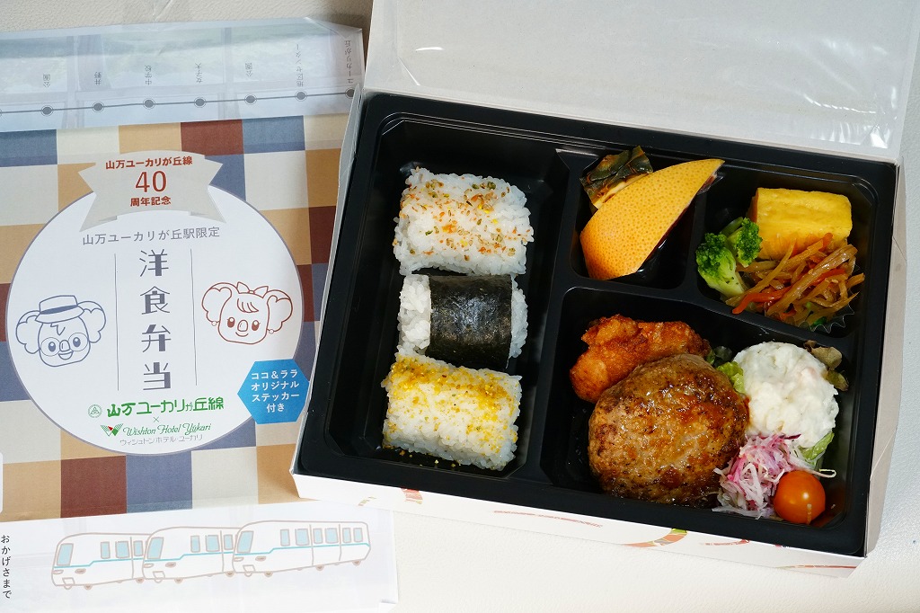 千葉県で新交通システム「ユーカリが丘線」を運営する不動産会社の山万は、2023(令和5)年9月2日(土)、3日(日)、9日(土)、10日(日)の4日間、「山万ユーカリが丘駅限定洋食弁当」(1,200円)を販売。山万ユーカリが丘線運行開始40周年記念として、ユーカリが丘駅直結で開業25周年を迎えるウィシュトンホテル・ユーカリとコラボした特製オリジナル駅弁を、各日11時からホテルの出入口にて、一日10個程度を販売した。