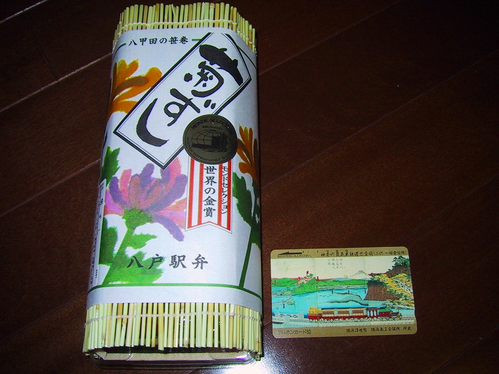 青森県のJR東北本線八戸駅へ、2002(平成14)年12月1日(日)に、新たな駅弁業者「ニュー八」が進出する。同日の東北新幹線の八戸延伸開業を機に、地元の仕出し料理屋が駅弁を売り始める。同社の看板商品「菊ずし」(1,000円)は、食用菊を混ぜた酢飯にウニ・イカ・ホタテなどを載せて笹の葉で包む押し寿司。