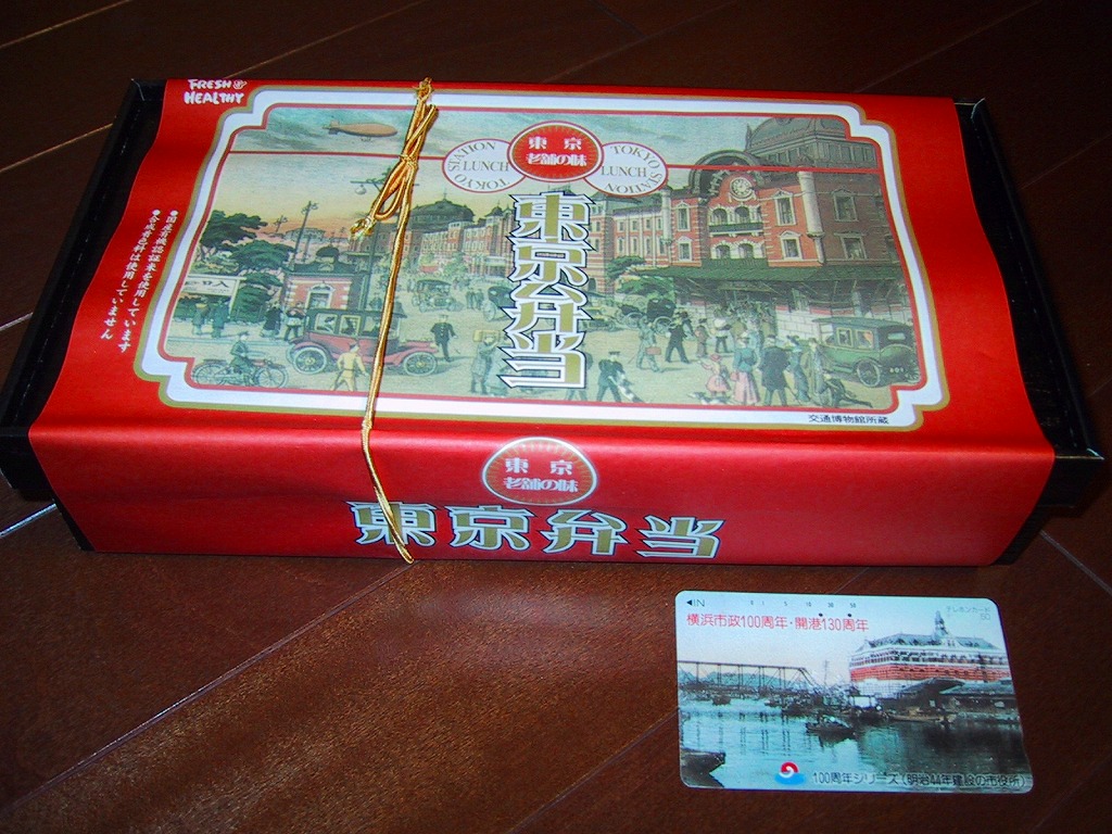 東京駅や上野駅など首都圏の主要駅で駅弁を販売する日本レストランエンタプライズ(NRE)は、2002(平成14)年10月1日(火)に新作の駅弁「東京弁当」(1,600円)を東京駅限定で発売。掛紙に開業当時の東京駅赤レンガ駅舎を描いた錦絵を用い、人形町魚久のキングサーモン粕漬、浅草今半の牛肉とレンコンの煮物、築地青木の卵焼といった、東京の老舗の食材を詰めた。東京駅の駅弁は、上野駅など首都圏の各駅や列車内でも買えるため、東京駅限定という駅弁は珍しい。