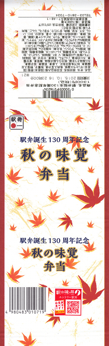 - 東京都 東海道本線 東京駅「駅弁誕生130周年記念・秋の味覚弁当」(1,300円)※NRE ※新作