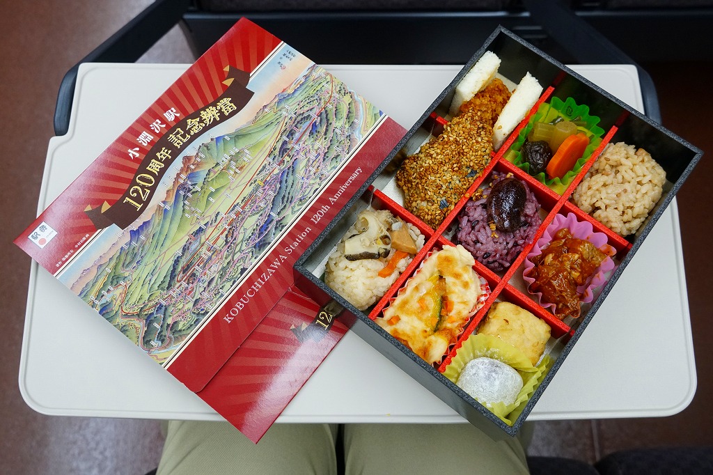 - 山梨「小淵沢駅120周年記念弁当」(1,850円)※丸政 ※新作 ※10月6日から小淵沢、甲府、東京、新宿駅で販売
