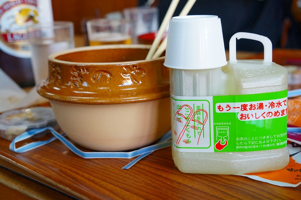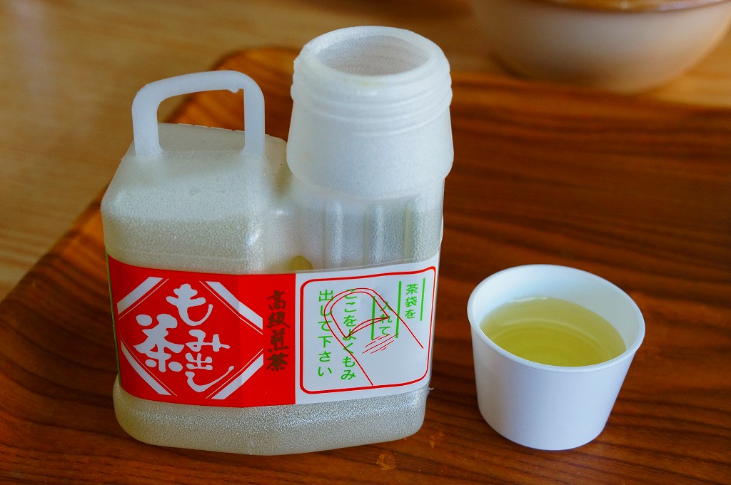 2013年の訪問時、横川駅前の駅弁屋の食堂「おぎのや」で、ポリ容器のお茶が100円で販売されていました。食事でもテイクアウトでも、お湯入りでもお湯なしでも、買うことができました。