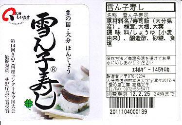 写真:大分県 日豊本線 佐伯駅「雪ん子寿し」(400円)