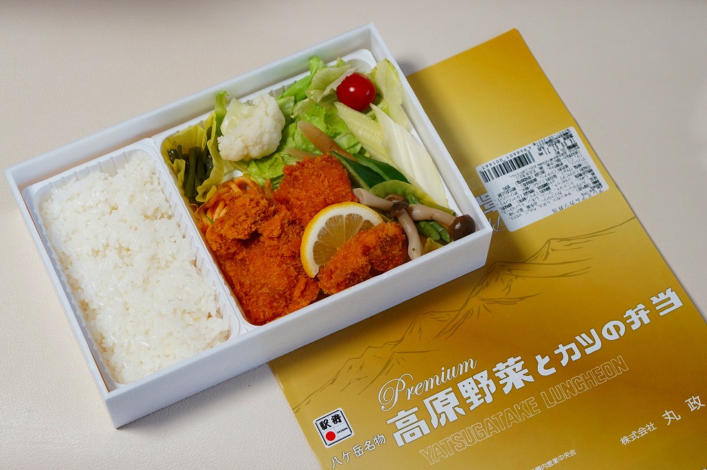 写真:山梨県 中央本線 小淵沢駅「Premium高原野菜とカツの弁当」(1,400円)