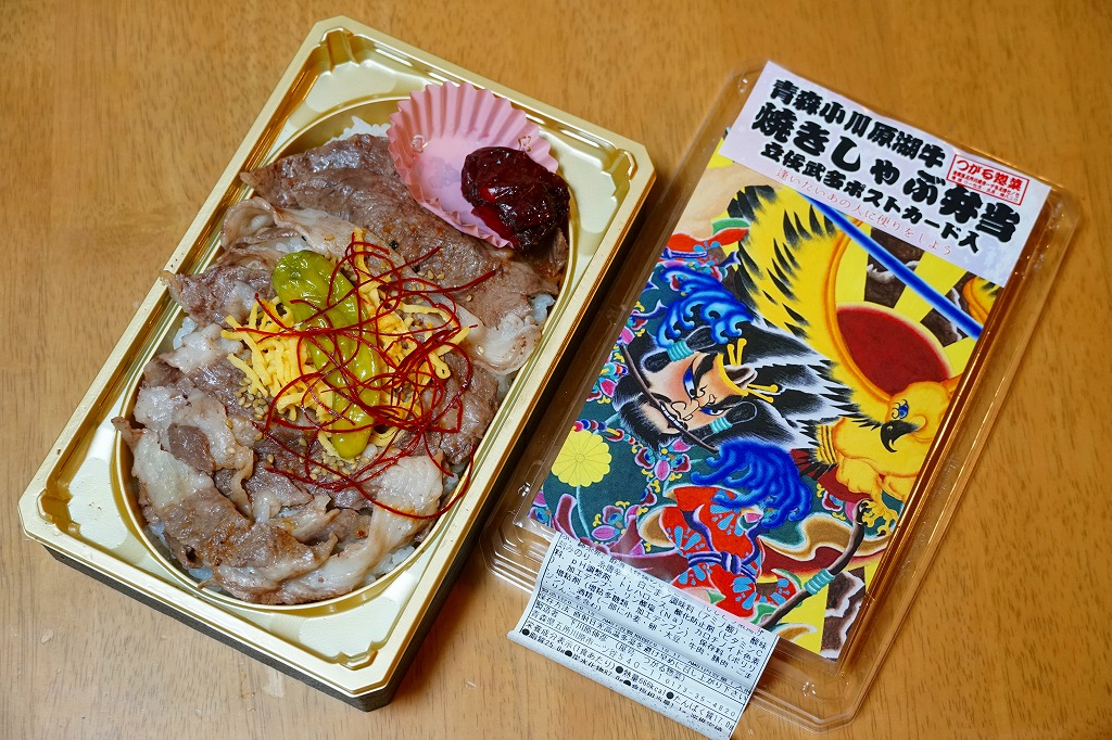 - 青森県 東北新幹線 新青森駅「青森小川原湖牛焼きしゃぶ弁当立佞武多ポストカード入」(1,200円)